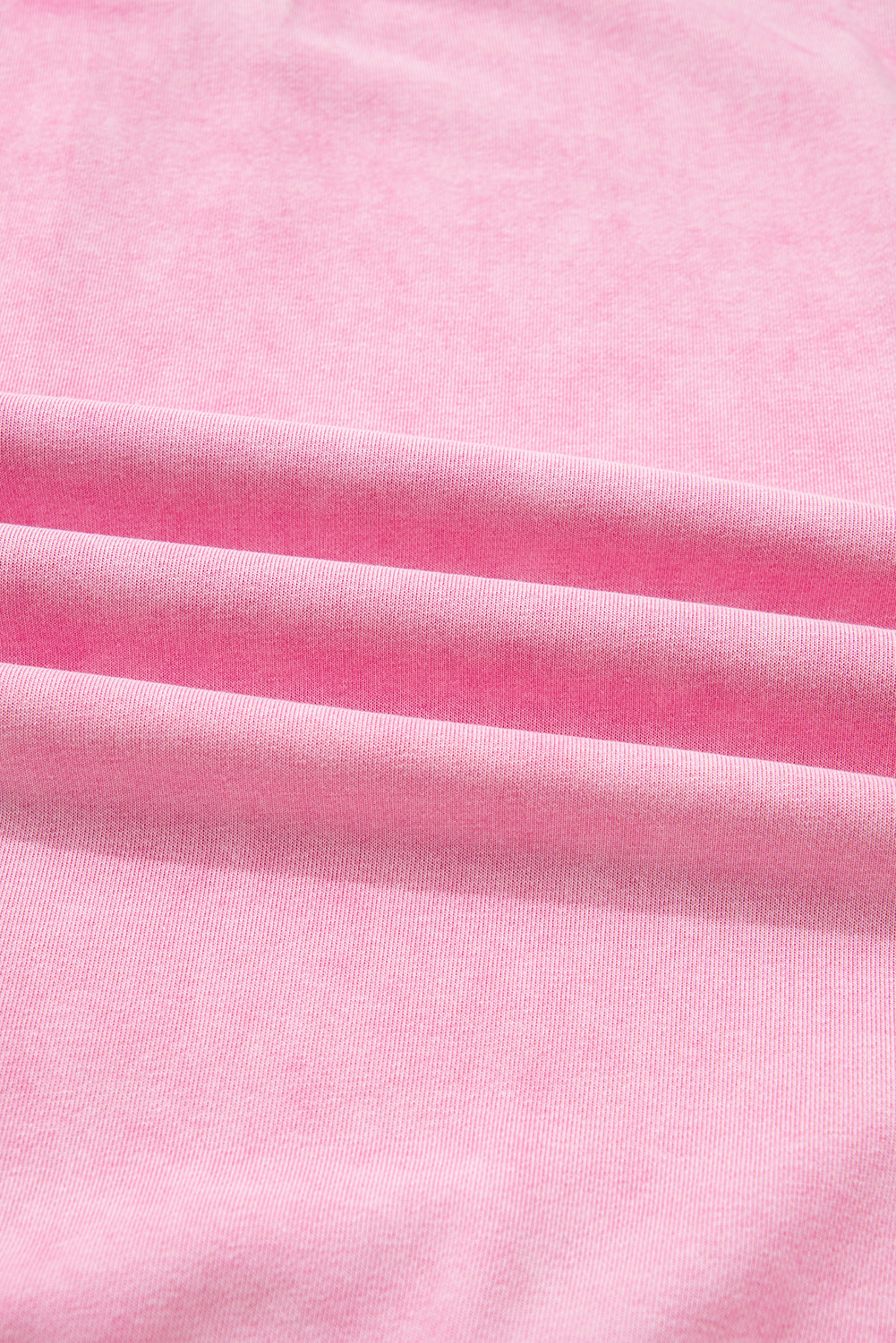 Bright Pink Mineral Wash Crossed Crew Neck Drop Shoulder Loose Sweatshirt