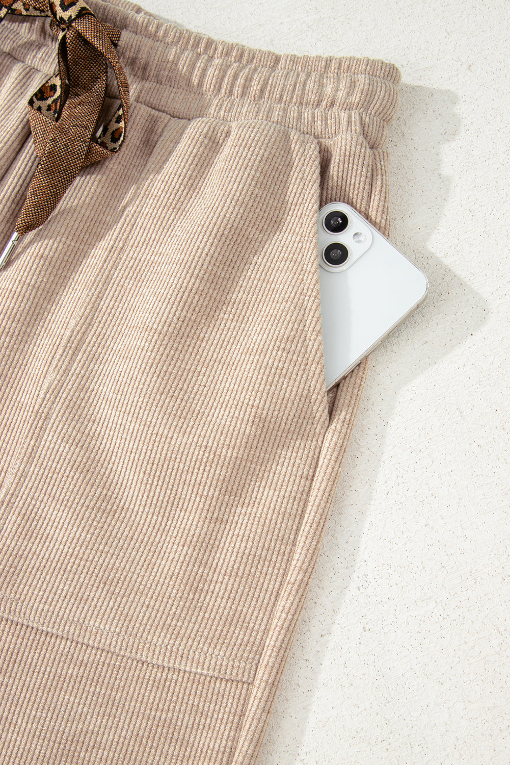 Gray Morn Corduroy Leopard Drawstring High Waist Trousers
