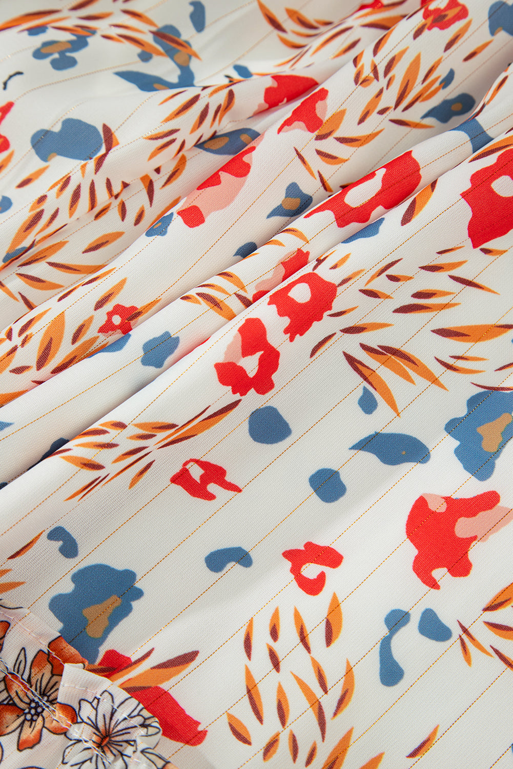 • The intricate floral print adds a touch of femininity to this shirred dress, creating a flattering silhouette that accentuates your curves beautifully.